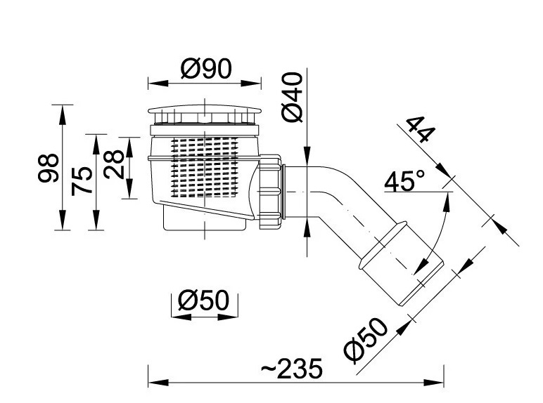 Сифон для душового піддону Styron поліпропілен хром STY-402-K