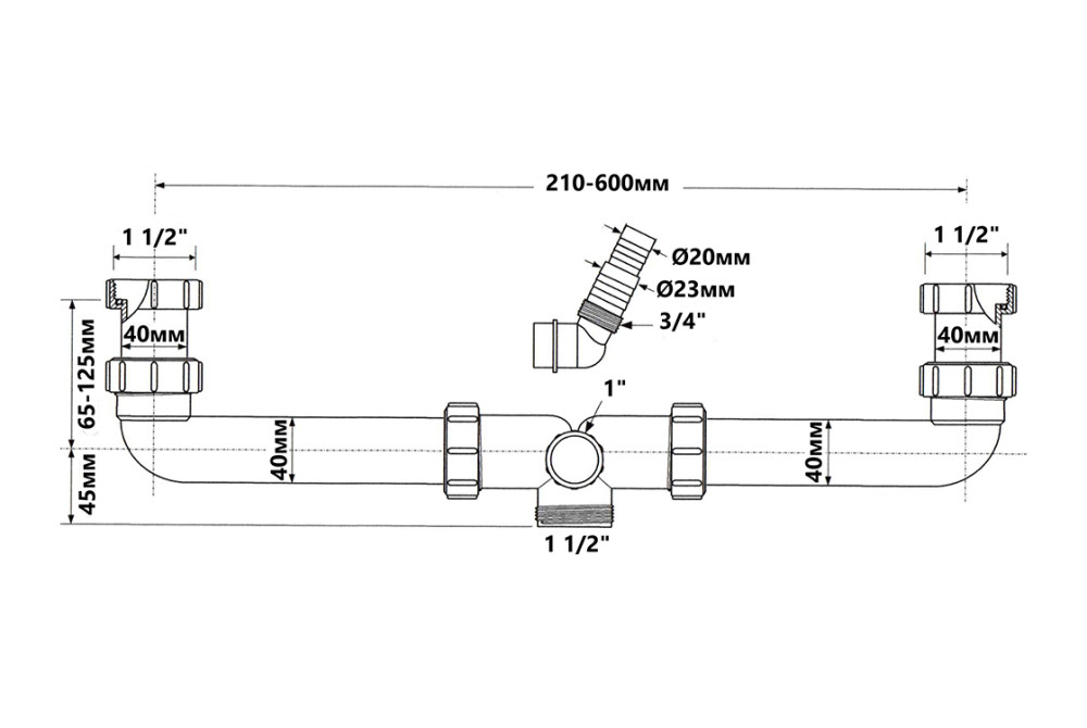 Сифон для двох кухонних мийок McAlpine з трійником 1½ з підключенням до пральної машини HC11