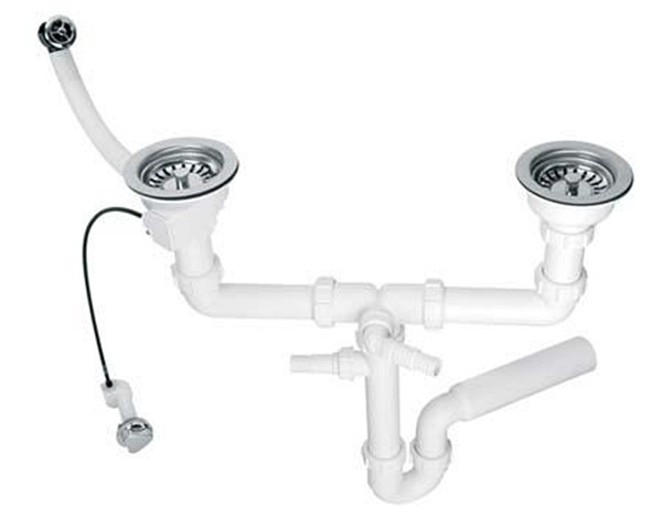 Сифон для кухонної мийки McAlpine подвійний з підключенням до пральної машини HC7HC12-POL2-25