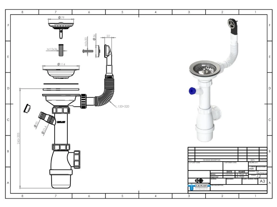 Сифон для кухонної мийки одинарний пластик/метал матовий 00001FM