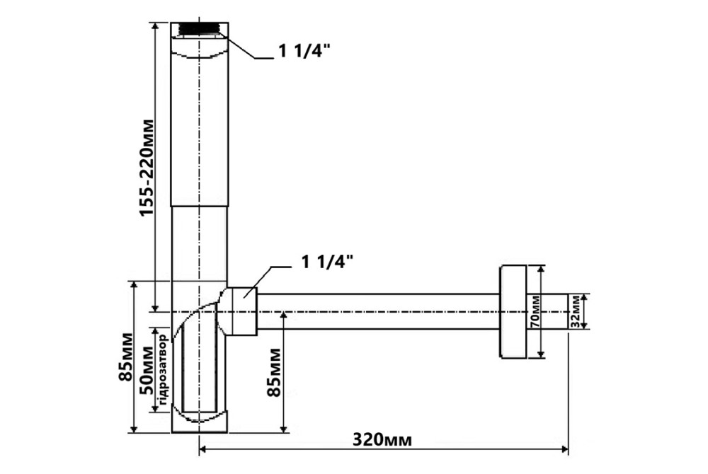 Сифон для раковини без зливу McAlpine 1¼ з ревізією латунь хром 203