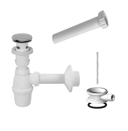Сифон для раковини Marmorin Klik Klak з переливом білий / хром ZPC
