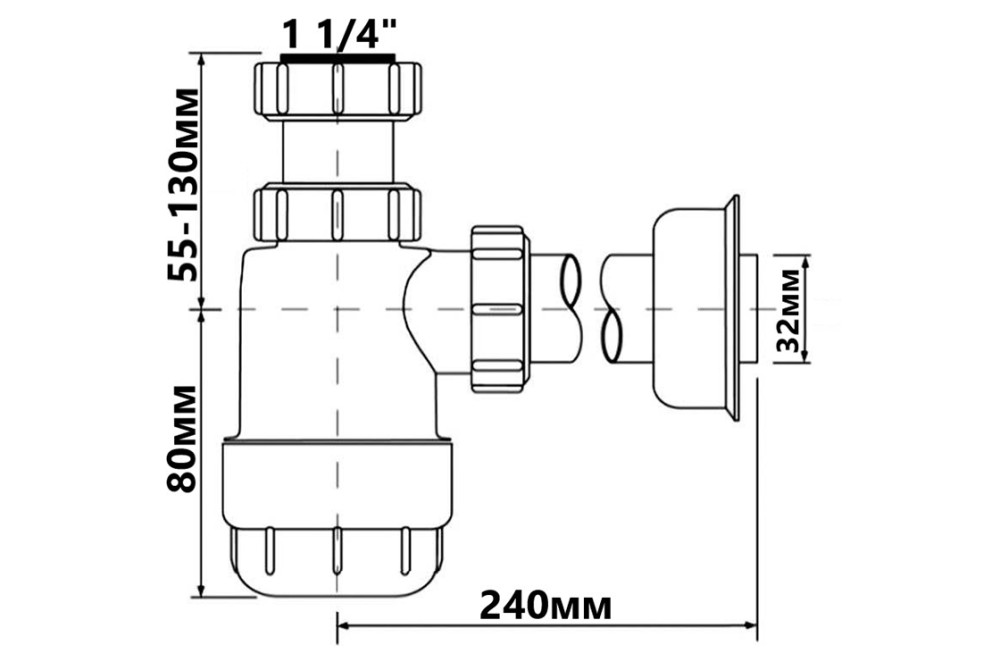 Сифон для раковини McAlpine без зливу 1¼ низький пластиковий білий