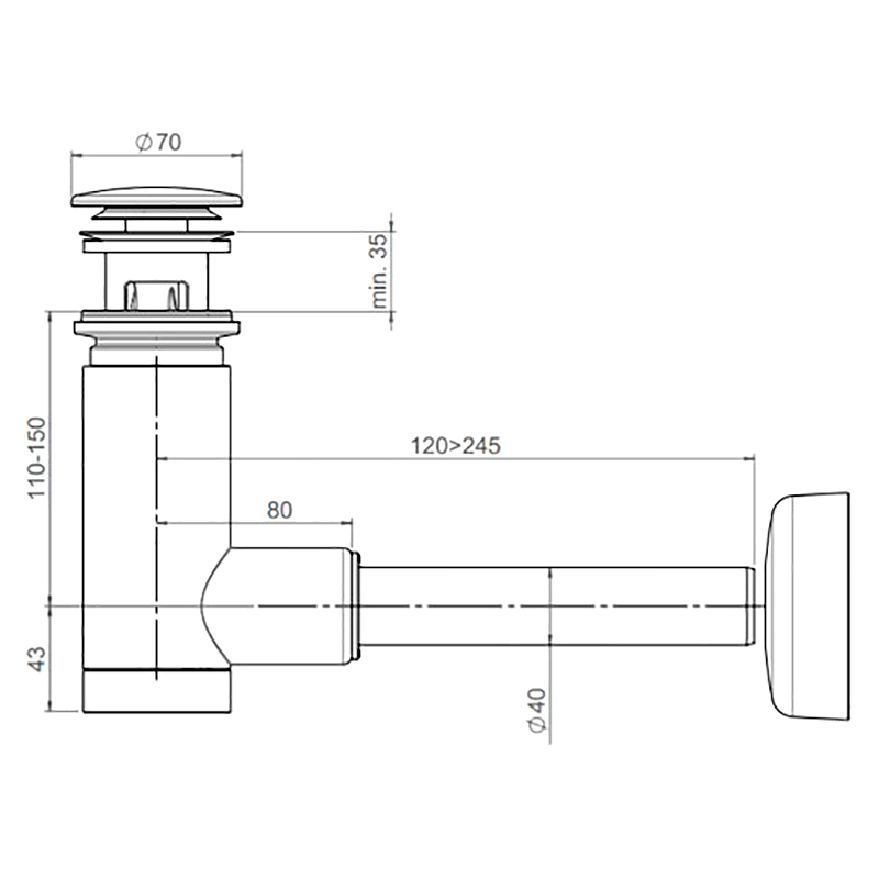 1) Сифон для раковини Prevex EasyClean телескопічний click-clack d40 пластик хром
