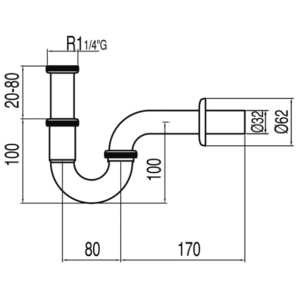 1) Сифон для раковини Tres вигнутий шарнірний хром