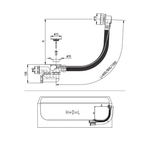 1) Сифон для ванни Devit 80 см автомат пластик / метал хром