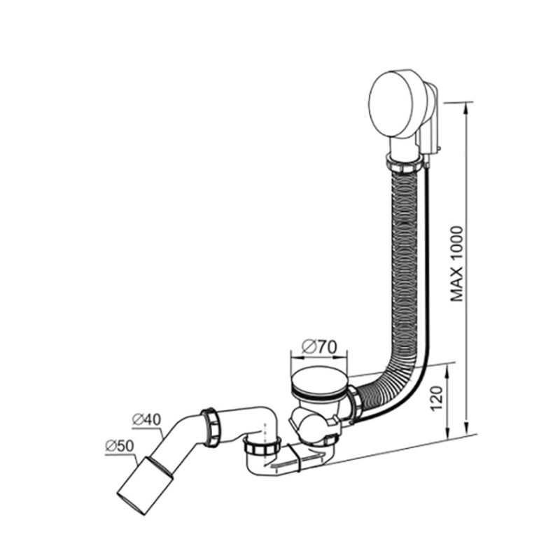Сифон для ванни Prevex з гофрою переливу 100 cм 40/50 мм A316M50-01