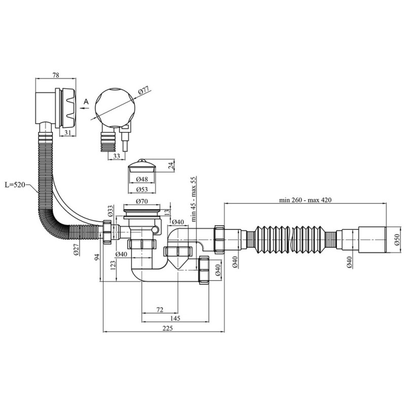 - Можливість знімати та встановлювати оглядову пробку без демонтажу сифона полегшує процес очищення та обслуговування.