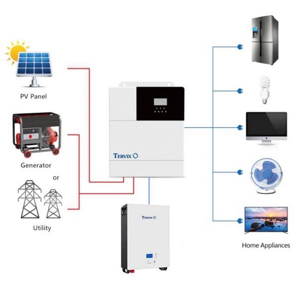 Система автономного живлення Tervix BANKA Pro Line інтегрується (підключається) доіснуючу електропроводку та налаштовується згідно з інструкцією, що йде в комплекті. У нас розроблено велику кількість схем електричного підключення для повної автоматизації функціонування системи загалом, а також необхідні комплектуючі.