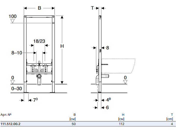 - Відстань між точками кріплення підвісного біде 18 або 23 см