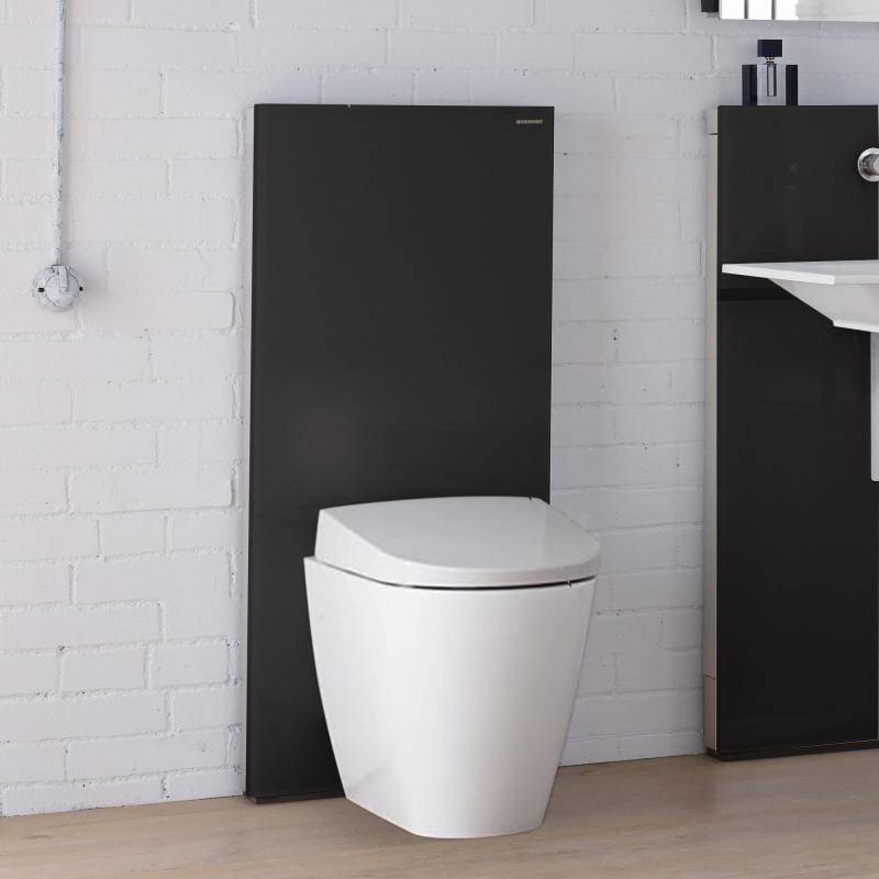 Система інсталяції для підлогового унітазу Geberit Monolith Plus 114 см чорне скло / алюміній чорний хром