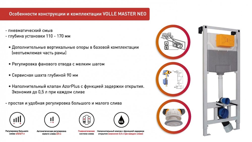 - Сумісна з пневматичними панелями змиву Neo від Volle