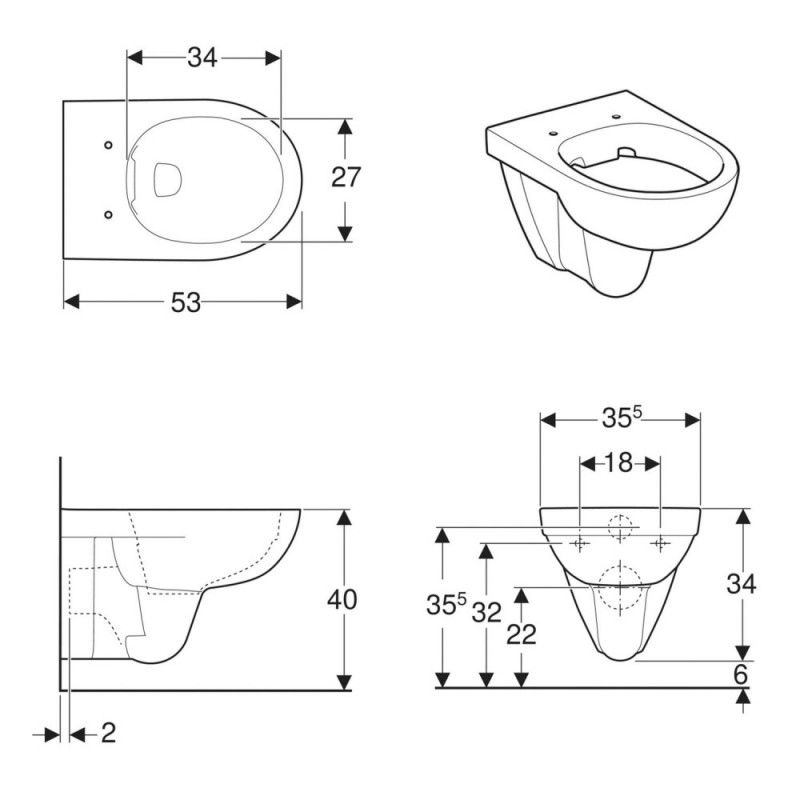 - Габарити унітазу (ВхШхГ): 34 х 35.5 х 53 см