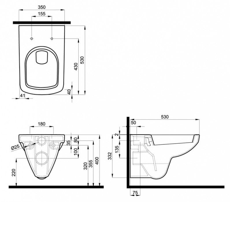- Для підвісних унітазів з розмірами підключення згідно з EN 33:2011
