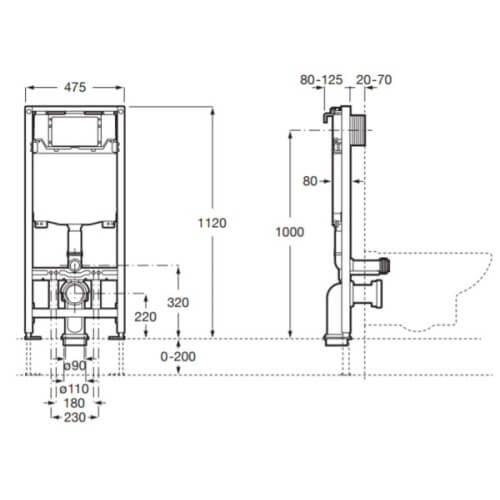 Система інсталяції Roca Duplo One для полегшеної установки для підвісного унітазу A890070020