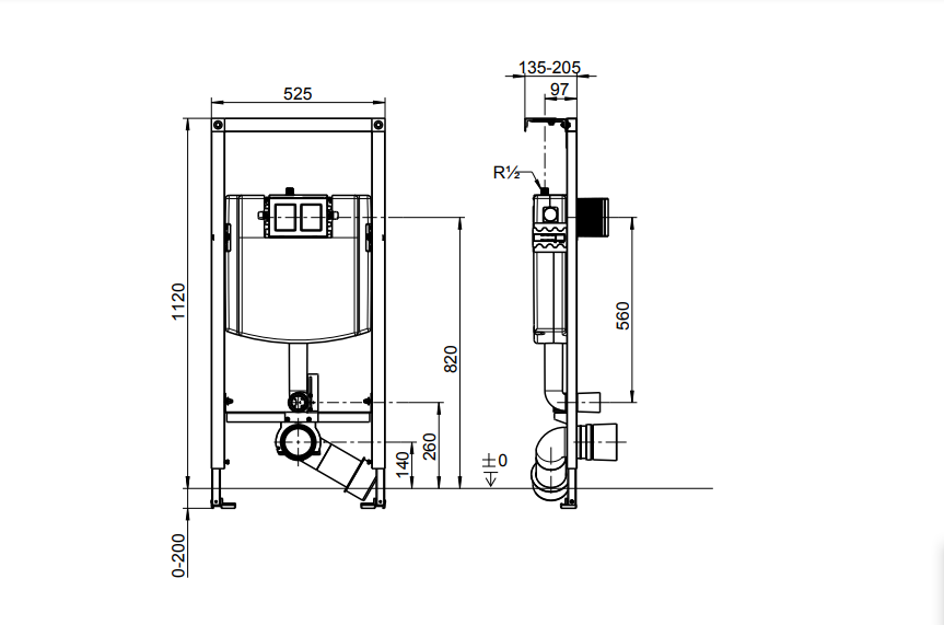 - Діапазон регулювання ніжок від рівня незавершеної підлоги до верхнього краю рівня чистої підлоги: 0-200 мм