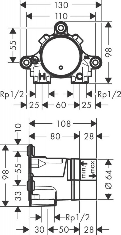 Скрытая монтажная часть настенного смесителя для раковины Axor Select 13625180