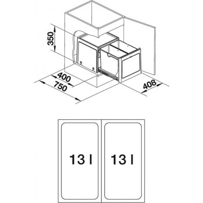 1) Сміттєва система Blanco Botton Pro 45 Manual з двома 13- літровими відрами