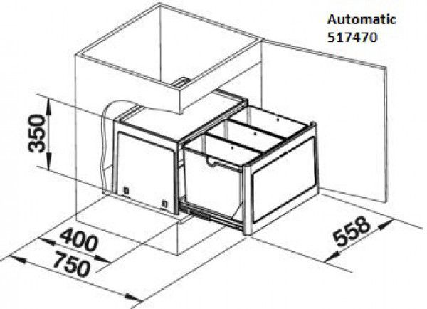 1) Сміттєва система Blanco Botton Pro 60 Automatic з трьома 13-літровими відрами
