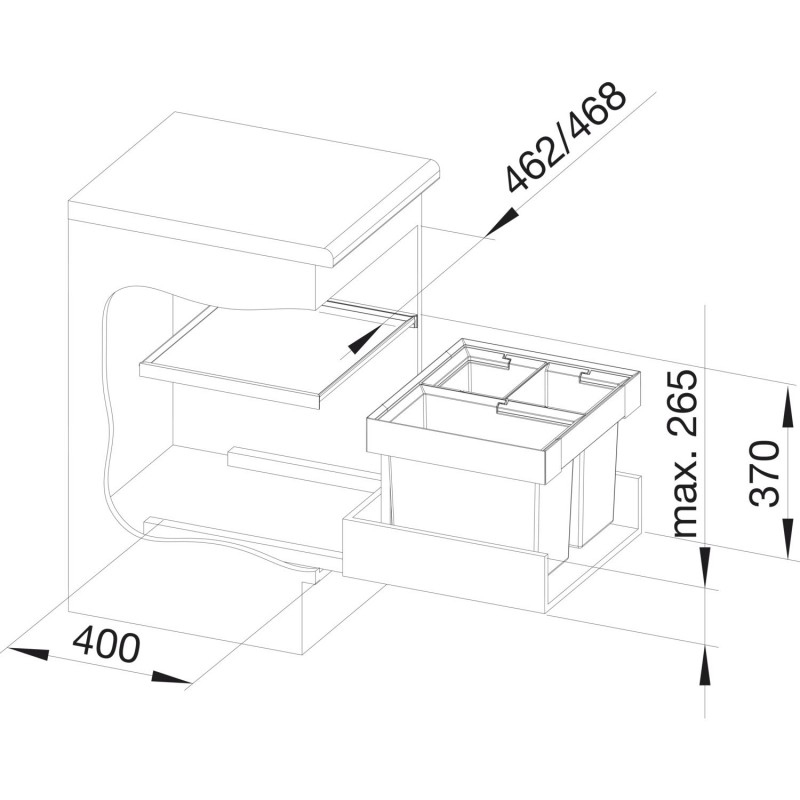 Висота монтируемого елемента 370 мм, глибина монтируемого елемента 400 мм.