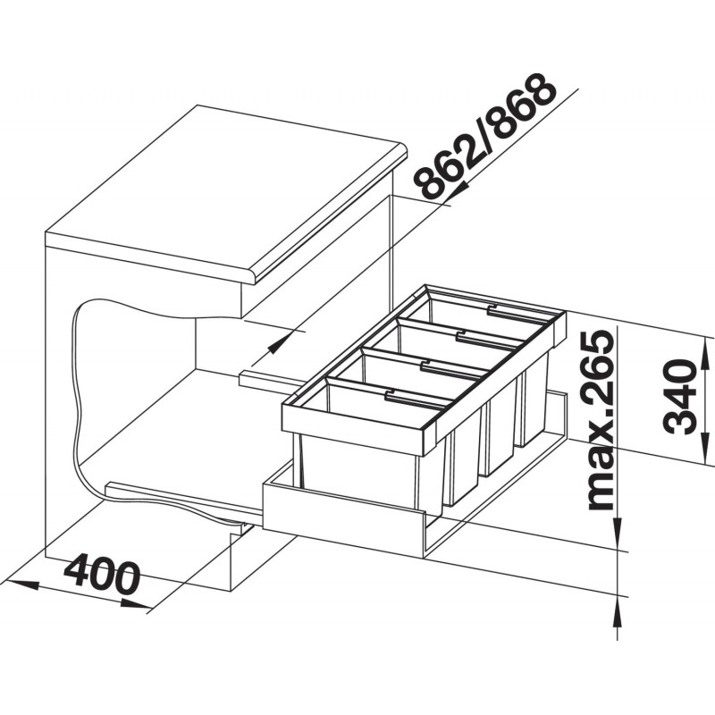 Елемент автоматичного відкривання дверей BLANCOMOVEX підходить для будь-яких висувних фасадів (доп. Опція - в комплект не входить)