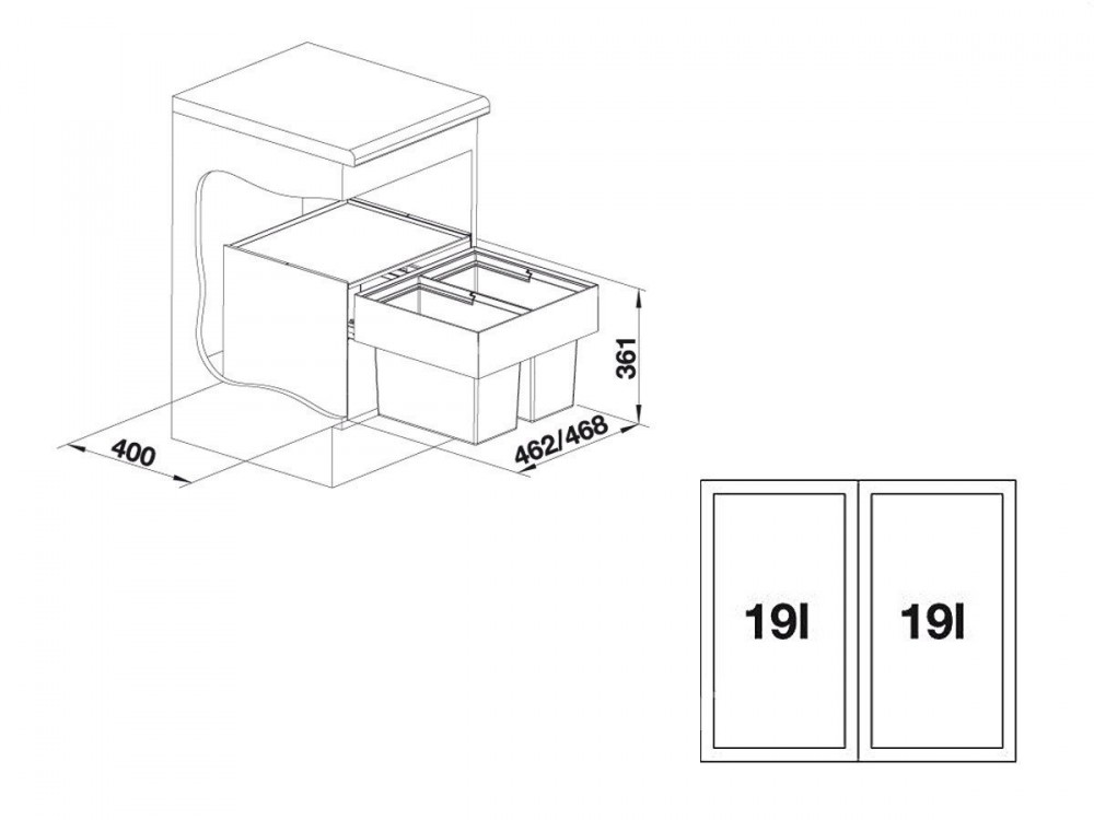 2) Висувна система зберігання з двома знімними контейнерами по 19 л