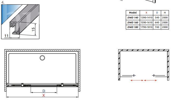 Фронтальні нерухомі стінки Espera DWD 140 є частиною душових дверей в нішу Espera DWD 140. Для створення душової кабіни Espera DWD дані нерухомі стінки необхідно Укомлектований душовою дверима.