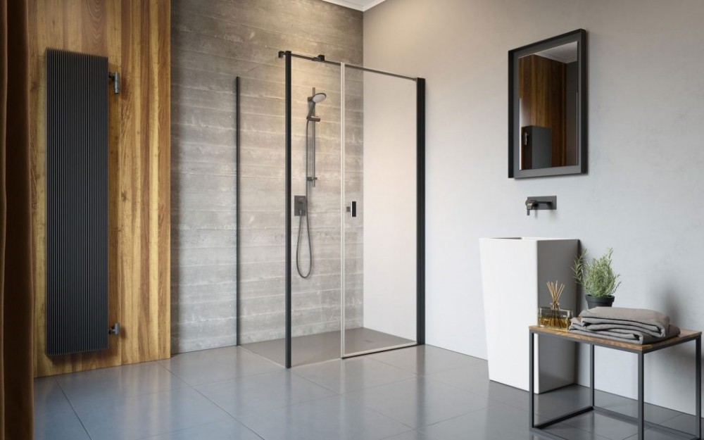1) Стінка душова фронтальна Radaway Nes 8 Black KDS I 32,8 см чорний / прозоре скло