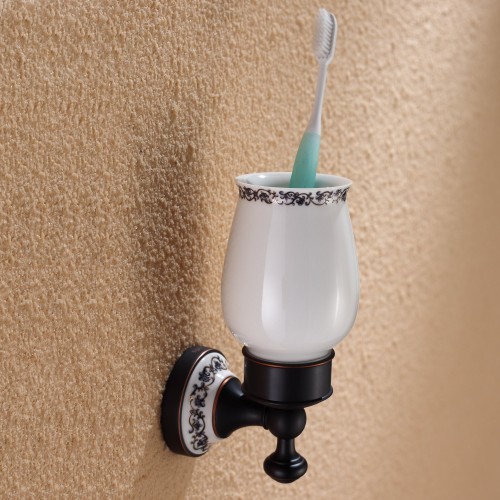 1) Стакан для зубних щіток Kraus Apollo керамічний з настінним тримачем білий / чорний шоколад