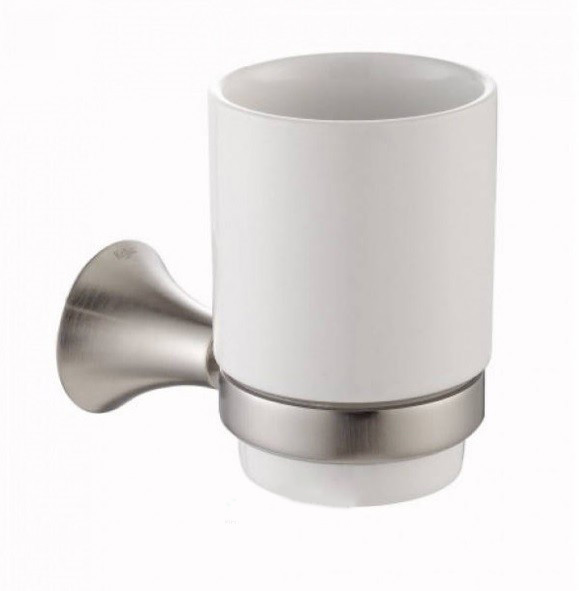 Стакан для зубних щіток Kraus Amnis з настінним тримачем кераміка / латунь хром матовий KEA-11104BN