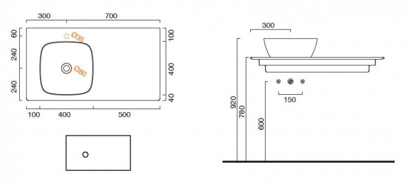 Стільниця під раковину Catalano Green Lux 40 монтаж раковини зліва, особливості:
