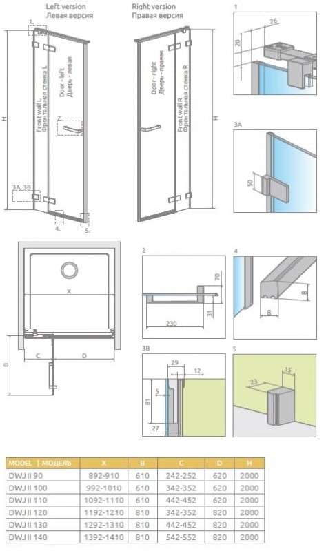 Зверніть увагу: для створення душової двері в нішу Radaway Arta DWJ II необхідно два елементи - стулка двері Radaway Arta G і передня стінка Radaway Arta DWJ II. Strong> div >