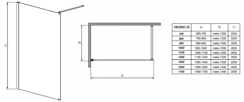 Серія Modo - це кабіни типу «Вільний вхід» (Walk-In) , тобто великі листи розжареного скла без дверей з просторим входом. У серію входять три моделі. Modo II складається зі скла, прикріпленого збоку до стіни за допомогою профілю і одного стабілізатора.