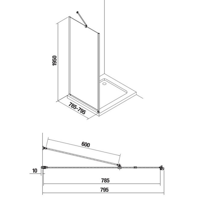 Стінка душова Jika Cubito Pure 80х195 см профіль хром прозоре скло