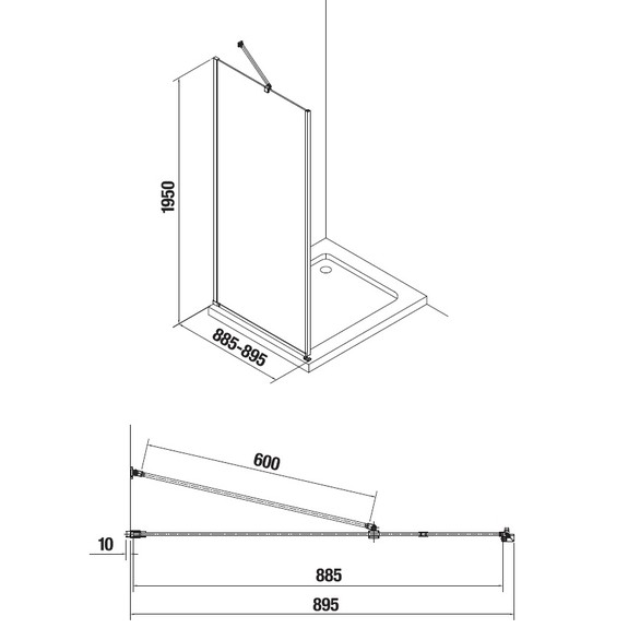 Стінка душова Jika Cubito Pure 90х195 см профіль хром прозоре скло