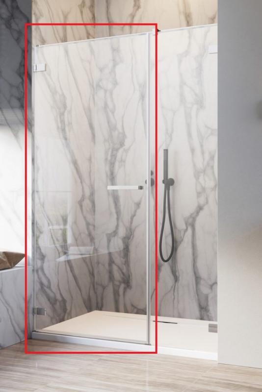 ширина стулки душових дверей вибирається замовником індивідуально з урахуванням ширини нерухомого стінка (макс.1475 мм), модель виготовляється виключно на замовлення