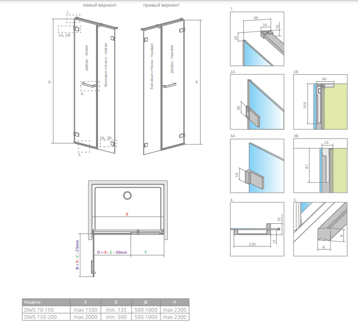 1) Створення душових дверей Radaway Arta QL DWS 150-200 L орна ліва хром плюс/прозоре скло