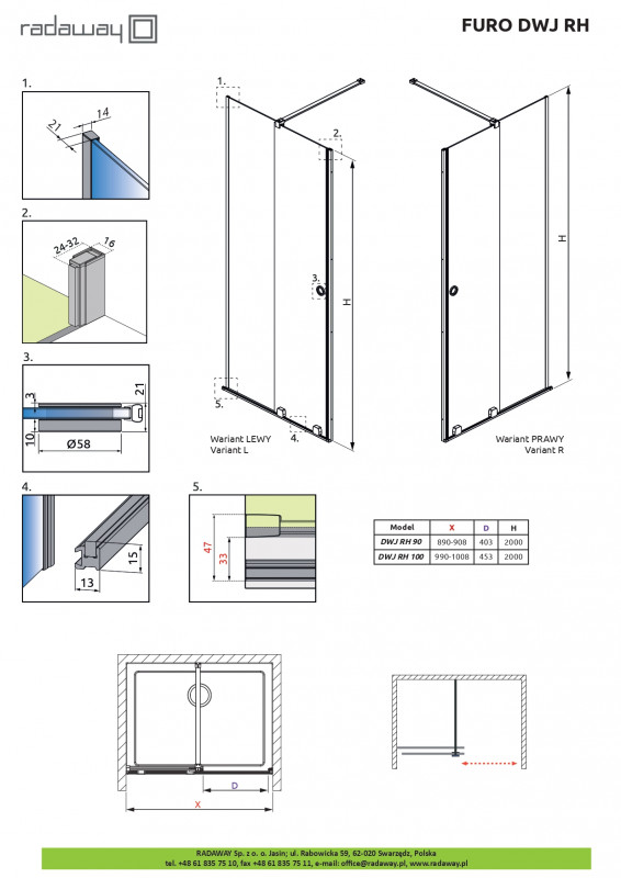 1) Створення душових дверей Radaway Furo Black DWJ RH 100 L 49,2х200 см права чорна/прозоре скло