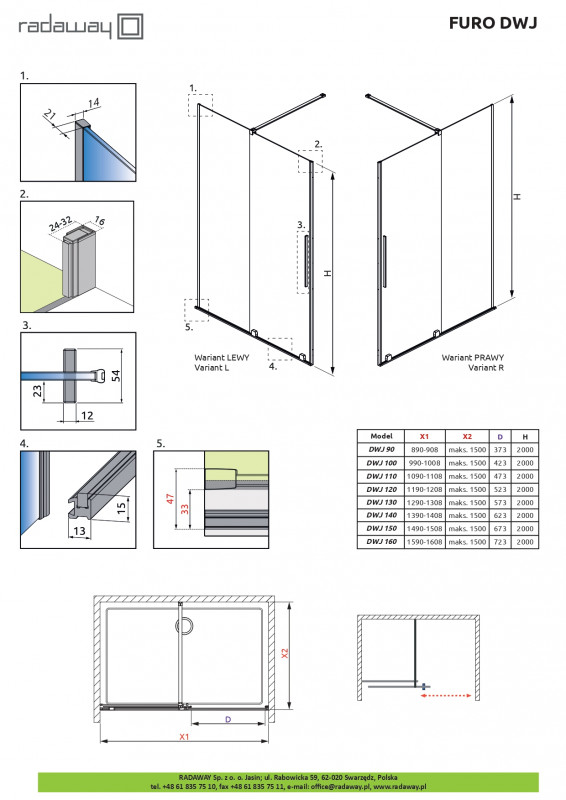 1) Стул душових дверей Radaway Furo Black DWJ 110 R розсувна 57,2х200 см права чорний/прозоре скло