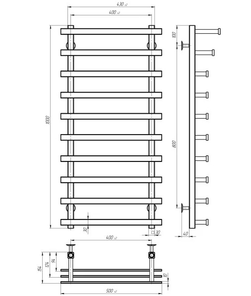 Сушарка для рушників Електрична Deffi Breeze П10 400x1000 ліве підключення JD04 чорний A.BZ.100.40.10.E.B.L.2