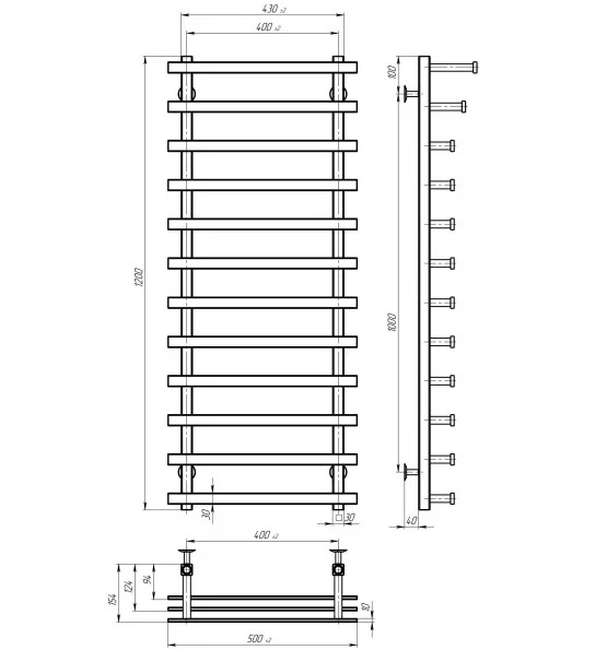 Сушка для рушників водяна Deffi Breeze П12 400x1200 нижнє підключення хром A.BZ.120.40.12.C.A