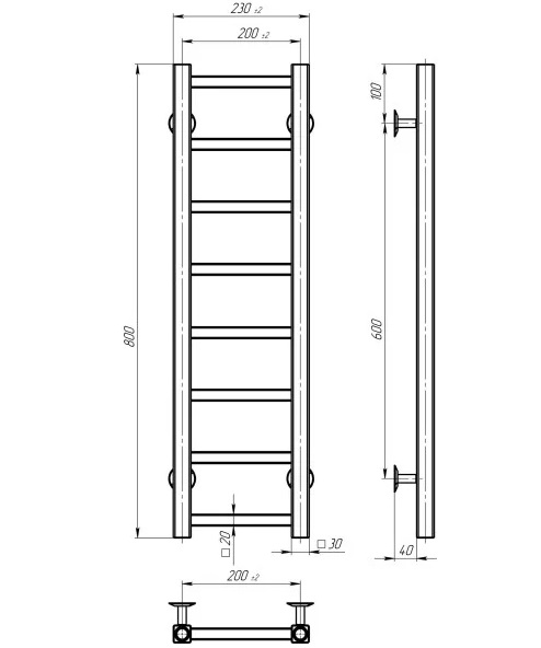 Сушка для рушників водяна Deffi Forest П8 200х800 нижнє підключення хром A.FR.80.20.8.C.A