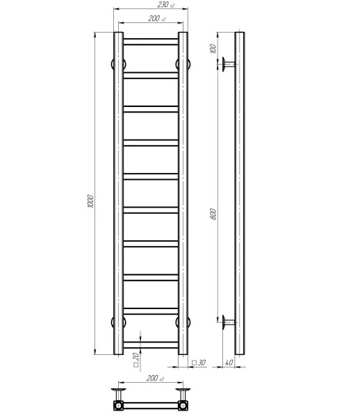 Сушка для рушників водяна Deffi Forest П10 200х1000 бічне ліве підключення хром A.FR.100.20.10.C.B
