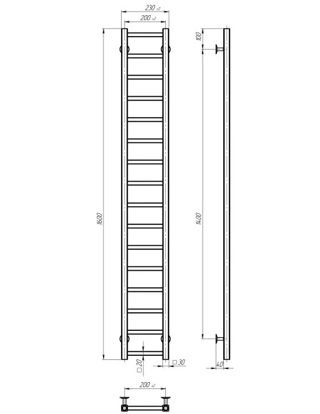 Сушка для рушників водяна Deffi Forest П16 200х1600 бічне ліве підключення чорний A.FR.160.20.16.B.B
