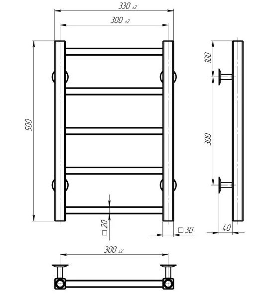 Сушка для рушників водяна Deffi Forest П5 300х500 бічне ліве підключення білий A.FR.50.30.5.W.B