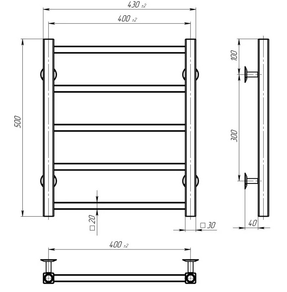 Сушка для рушників водяна Deffi Forest П5 400х500 бічне ліве підключення білий A.FR.50.40.5.W.B