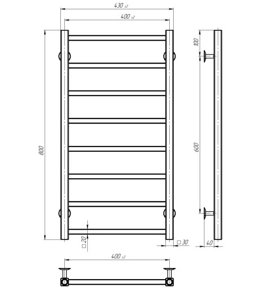 Сушка для рушників водяна Deffi Forest П8 400х800 бічне праве підключення хром A.FR.80.40.8.C.C