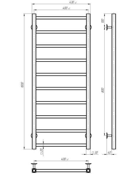 Сушка для рушників водяна Deffi Forest П10 400х1000 бічне ліве підключення чорний A.FR.100.40.10.B.B