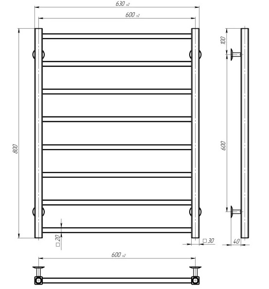 Сушка для рушників водяна Deffi Forest П8 600х800 бічне ліве підключення чорний A.FR.80.60.8.B.B