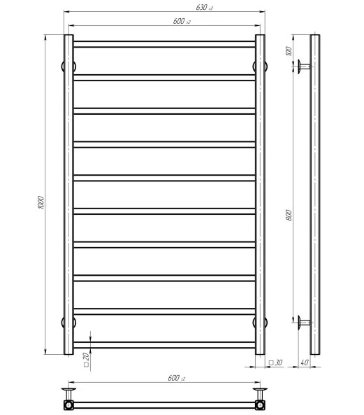 Сушка для рушників водяна Deffi Forest П10 600х1000 бічне праве підключення хром A.FR.100.60.10.C.C